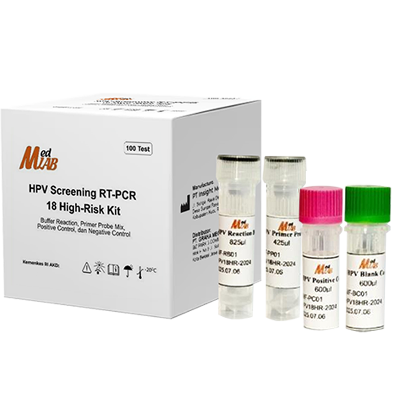 HPV Screening RT PCR 18 High Risk Kit ini dapat mendeteksi sebanyak 18 High Risk dengan deteksi genotype spesifik HPV 16, HPV 18, dan 16 HR lainnya (26, 31, 33, 35, 39, 45, 51, 52, 53, 56, 58, 59,66, 68, 73, dan 82). Reagen ini kompatible pada alat RT PCR 4 channel.